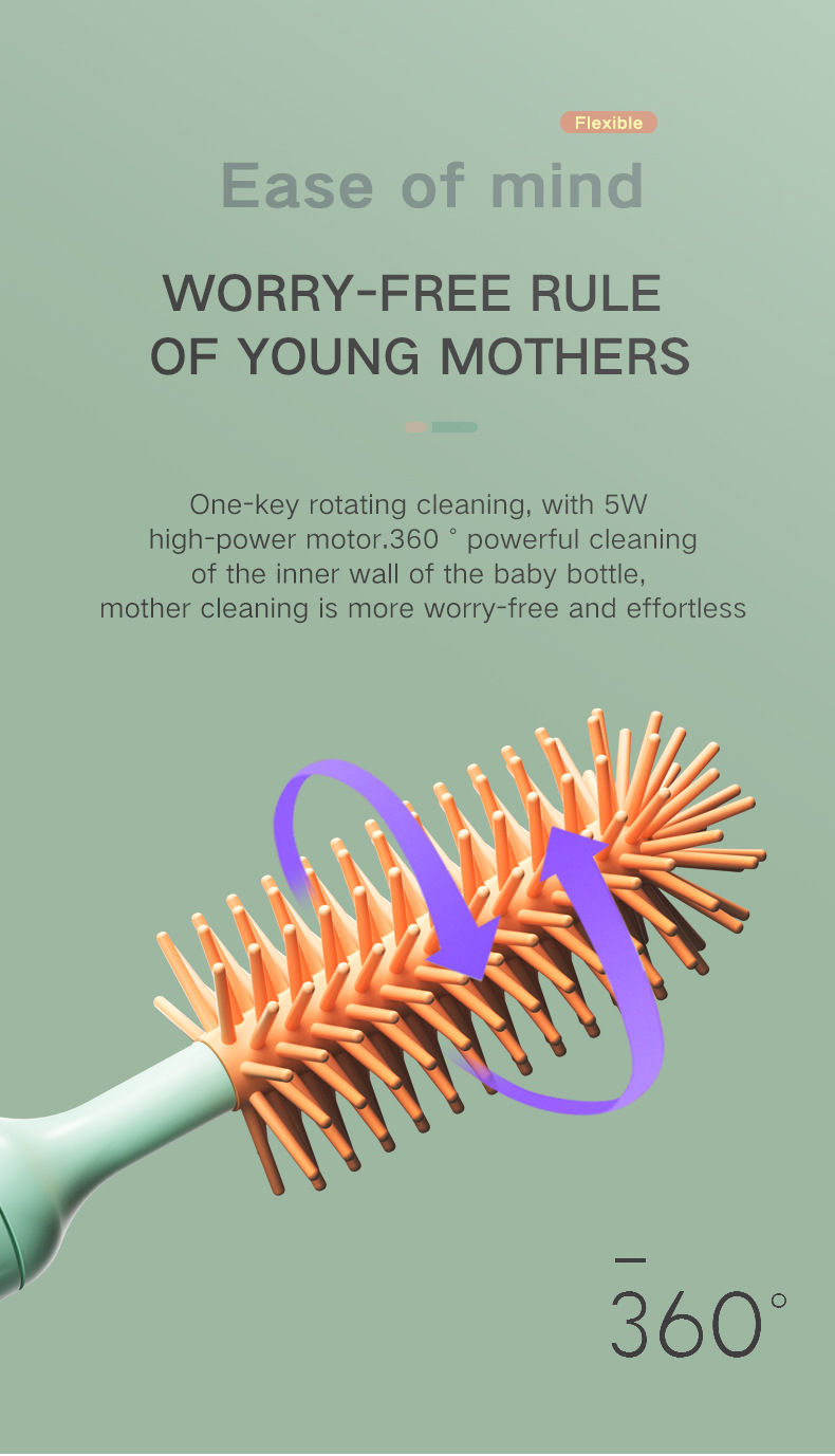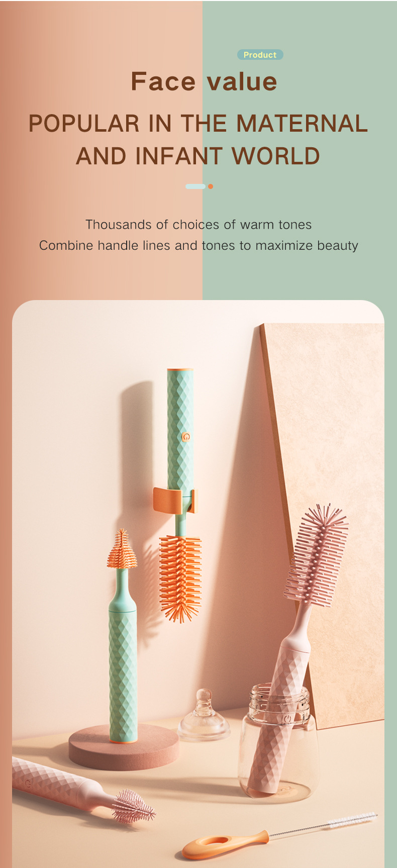 Silicone Bristles: Soft and safe for baby bottles and pacifiers.